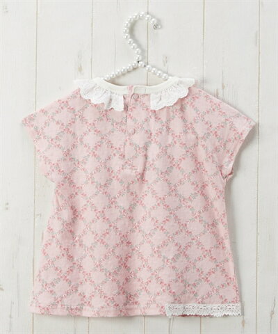 【UZULAND】衿レース付小花総柄Tシャツ(女の子 子供服) ニッセン nissen ピンク イエロー カラー ピンク/イエロー サイズ 90/100/110/120/130 備考 単位:cm ※サイズの誤差は多少発生します。