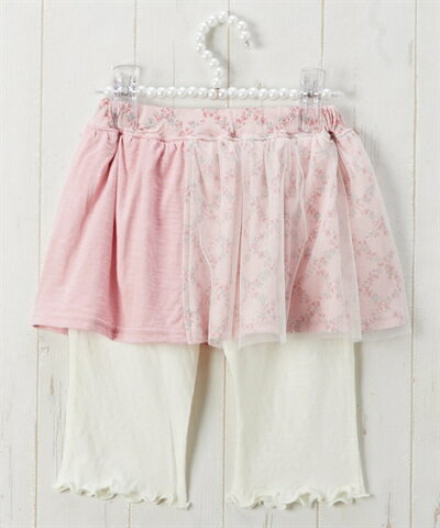 スカート部分は花柄&チュールをあしらった部分と無地部の切替がポイント!シンプルなトップスにも合わせやすい可愛いデザインに。